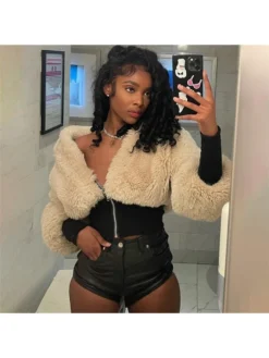 Zipper V Neck Lamb Wool Slim Fit Jacket