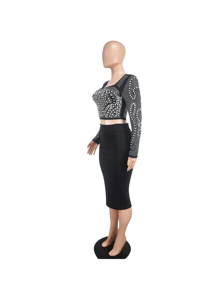 Beading,Faux Pearl,Patchwork,Pure Color,Solid Color,Plain Color,Pullover