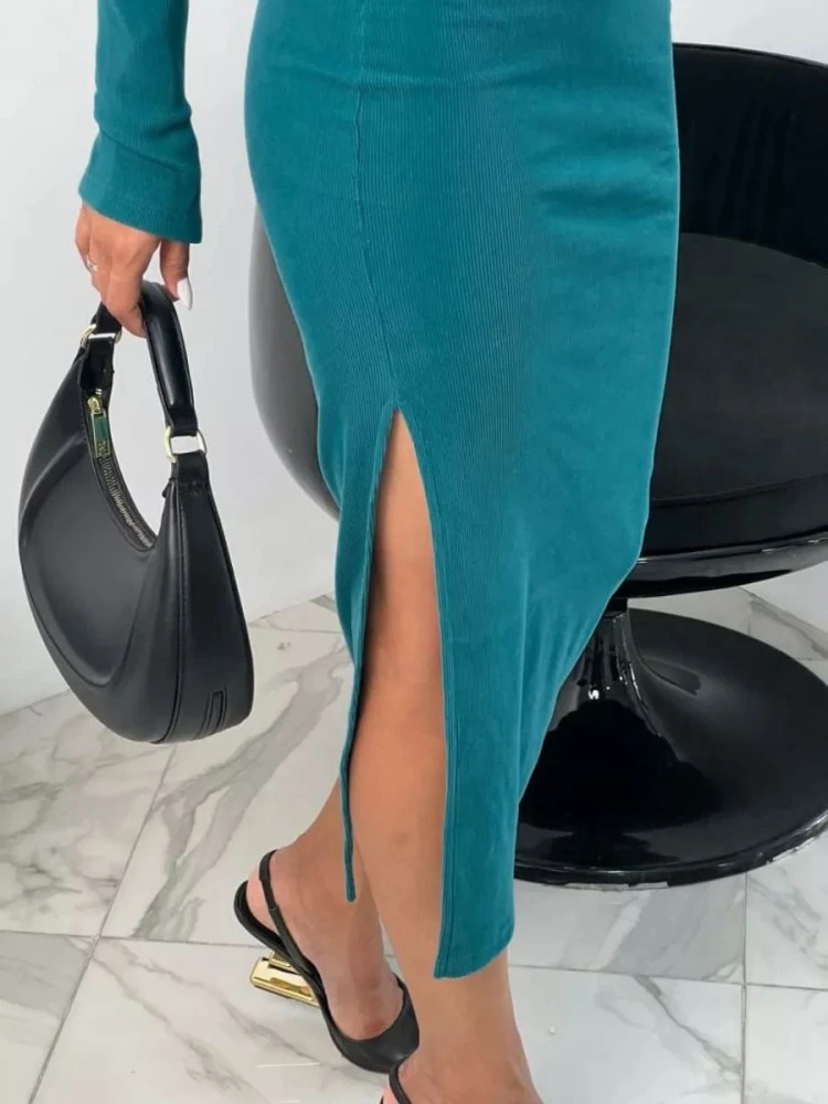 Patchwork,Pure Color,Split Hem,Solid Color,Plain Color,Pullover