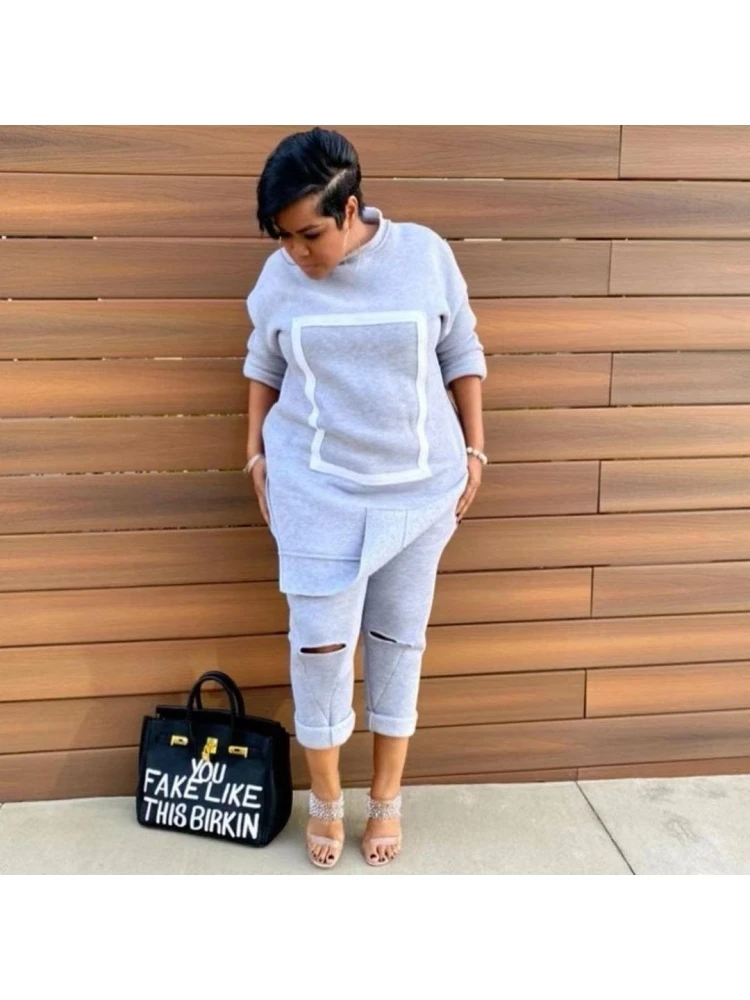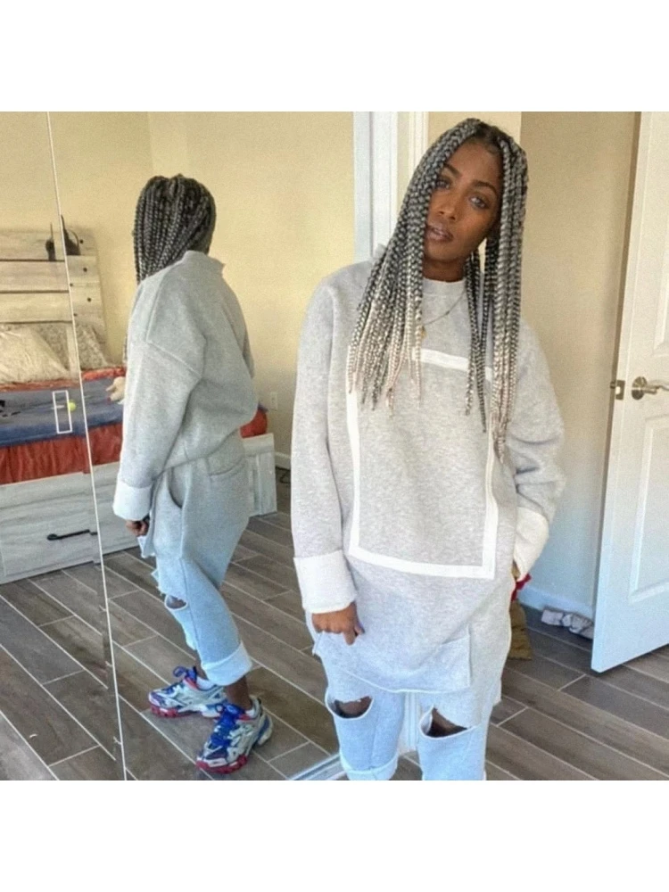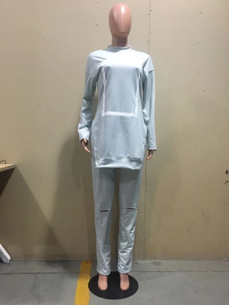 Burn-Out,Patchwork,Pure Color,Solid Color,Ripped,Pullover