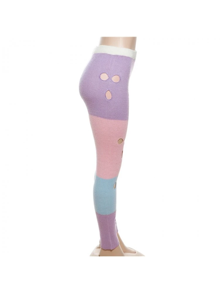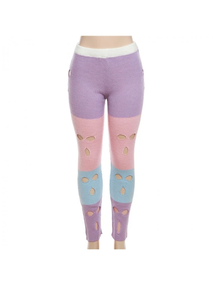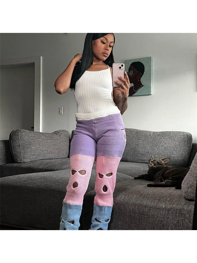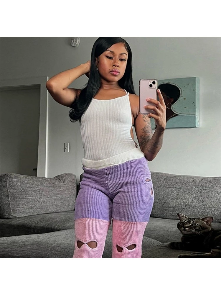 Colorblock,Contrast Color,Hollow Out,Color Matching,Ripped