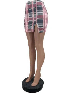 Colorblock,Contrast Color,Patchwork,Plaid,Split Hem,Square,Color Matching