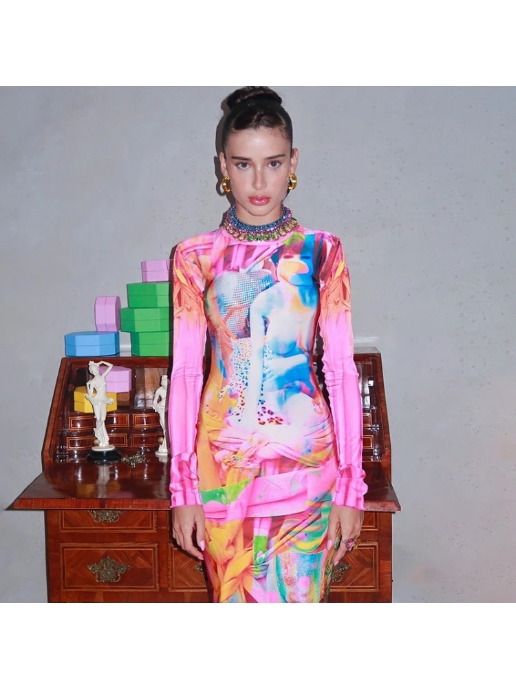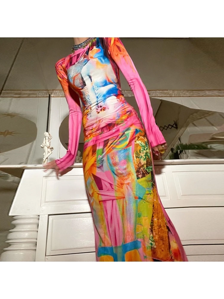 Abstract Printing,Colorblock,Contrast Color,Patchwork,Color Matching,Pullover,Print
