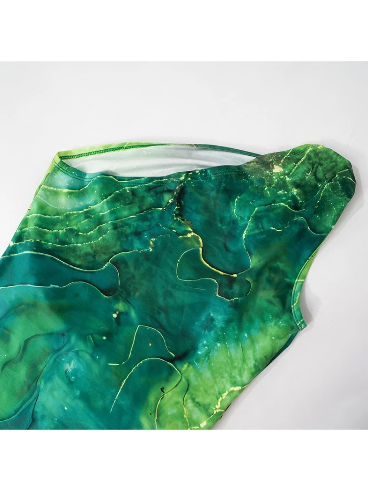 Abstract Printing,Colorblock,Contrast Color,Printed,Ruched,Color Matching,Pullover,Print