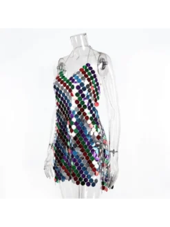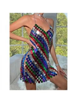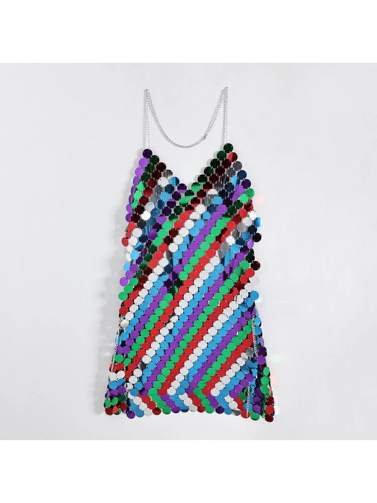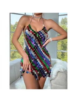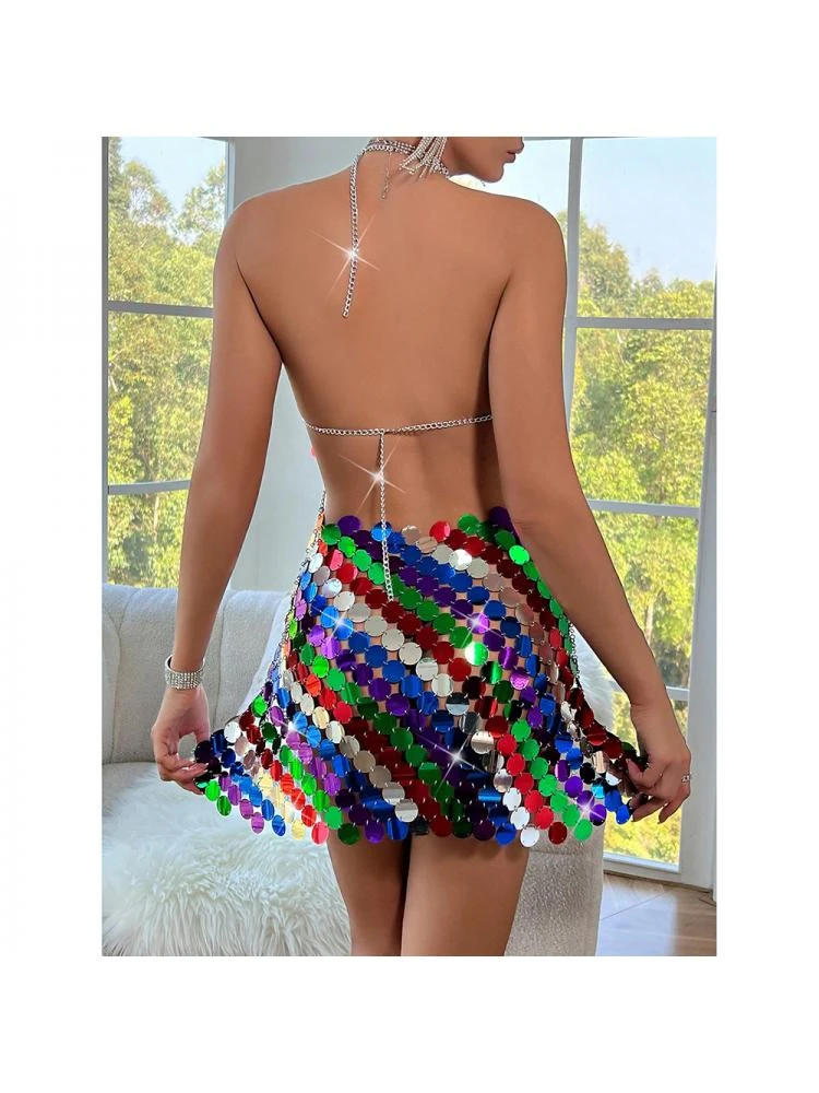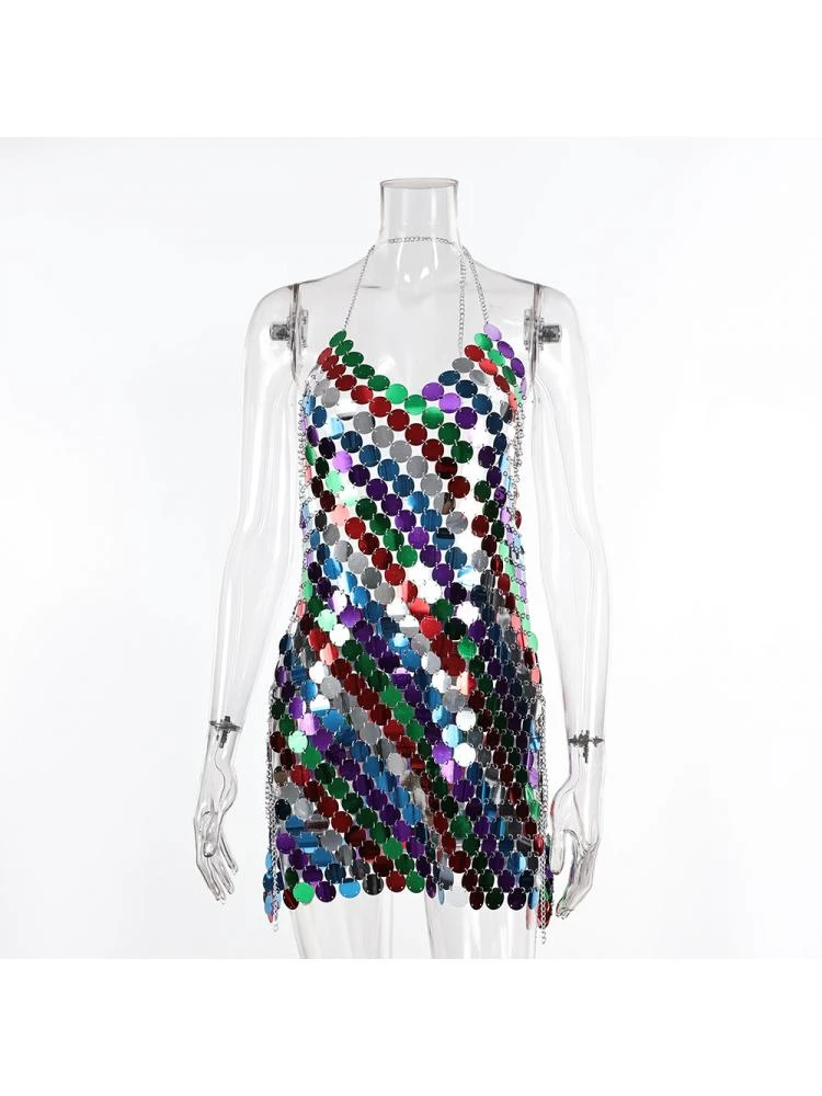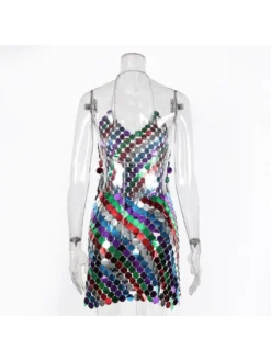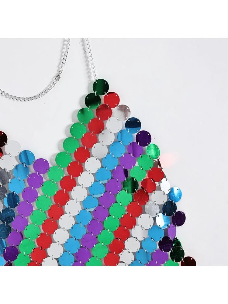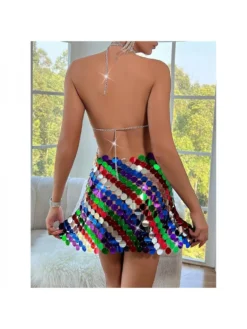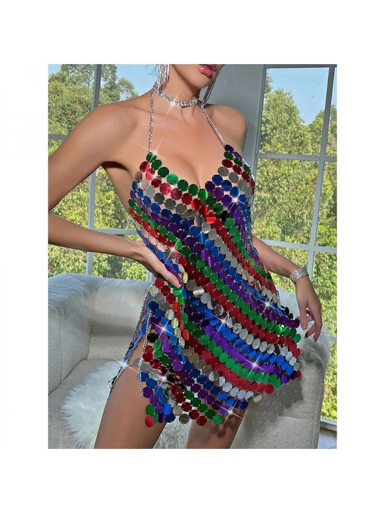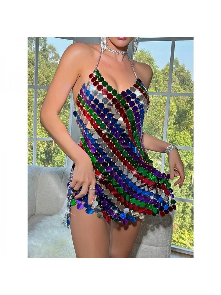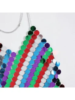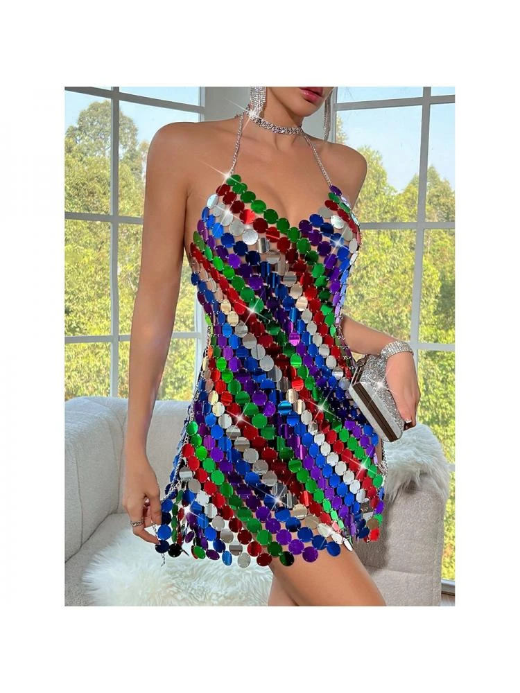 Colorblock,Halter,Patchwork,Sequin