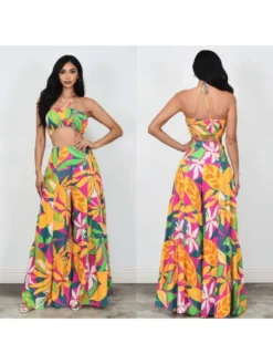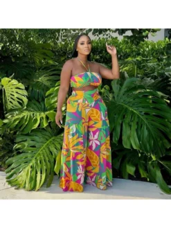 Colorblock,Contrast Color,Halter,Lace Up,Patchwork,Printed,Color Matching,Pullover,Print,Smocking