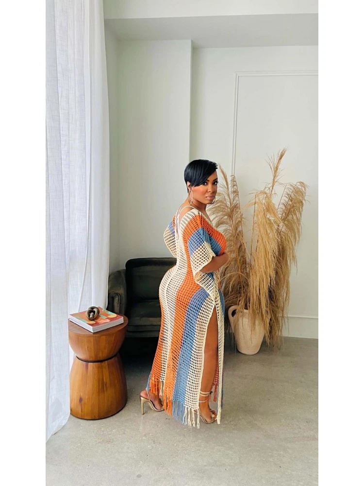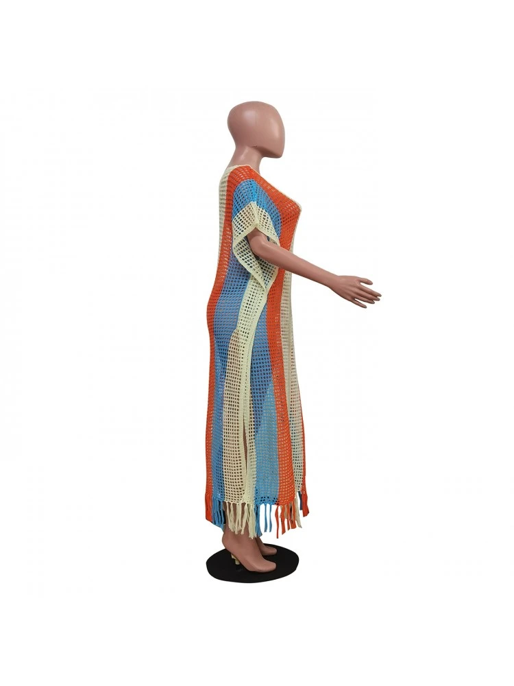 Colorblock,Striped,Fringe,Tassel,Pullover