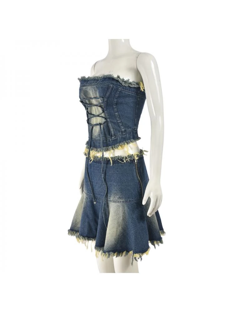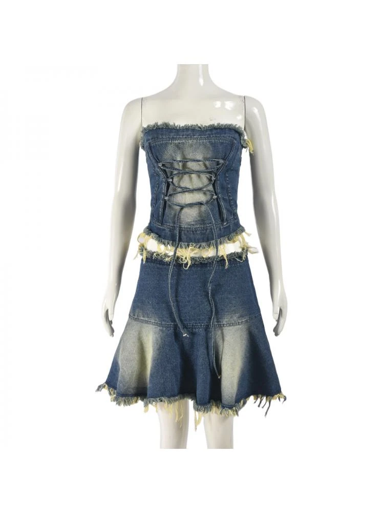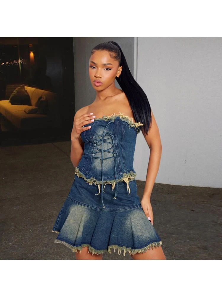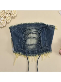 Colorblock,Contrast Color,Lace Up,Patchwork,Pleated,Raged Hem,Washed,Tie-wrap,Color Matching,Pullover