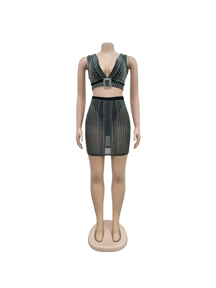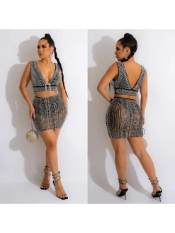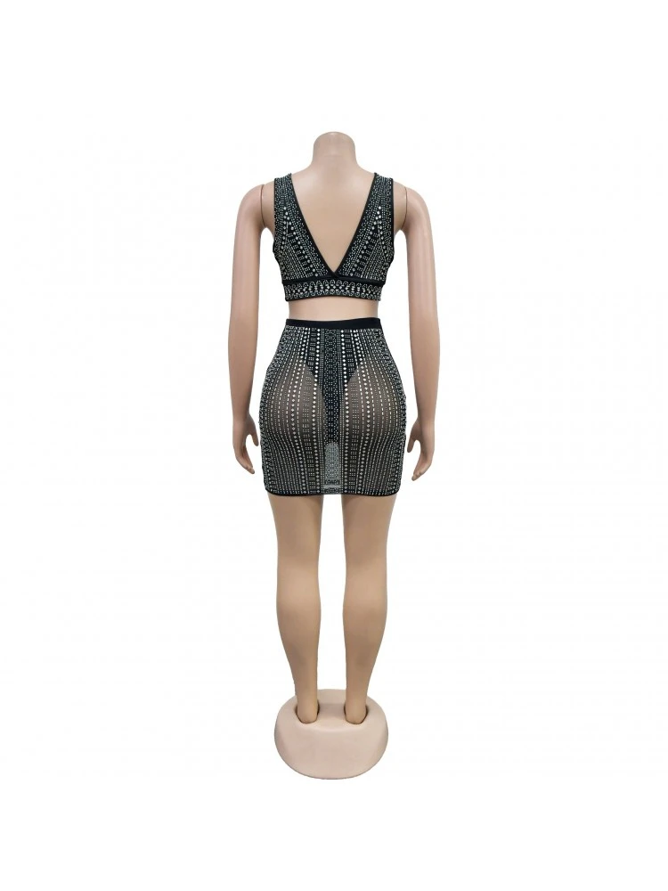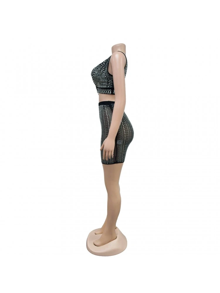 Hotfix Rhinestones,Patchwork,Pullover,See Through,Embellished