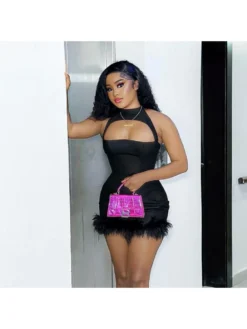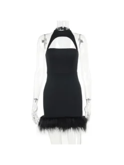Feather,Halter,Hollow Out,Patchwork,Pure Color,Solid Color,Pullover