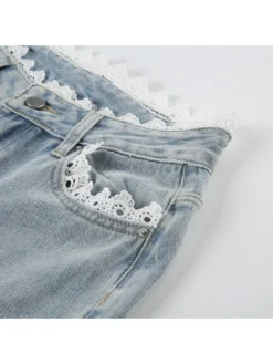 Please contact us and we are pleased to help you cut button holes in denim before delivery if you have such requirements because the button holes would not be open in the general case.The Items which cut button holes in denim can not be returned.