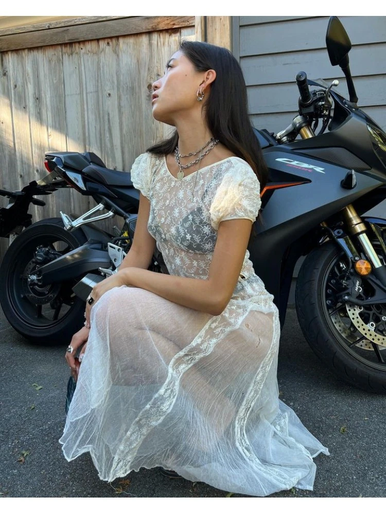 Lacework,Patchwork,Pure Color,Solid Color,Plain Color,Pullover,See Through