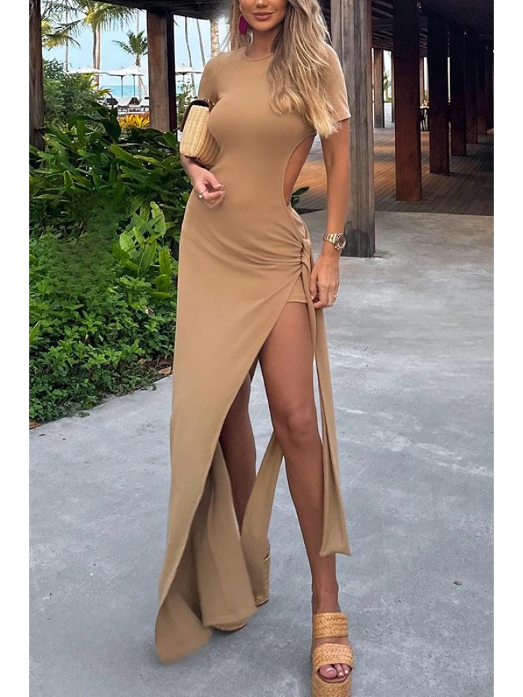 Patchwork,Pure Color,Tie-wrap,Solid Color,Pullover,Hollow-out