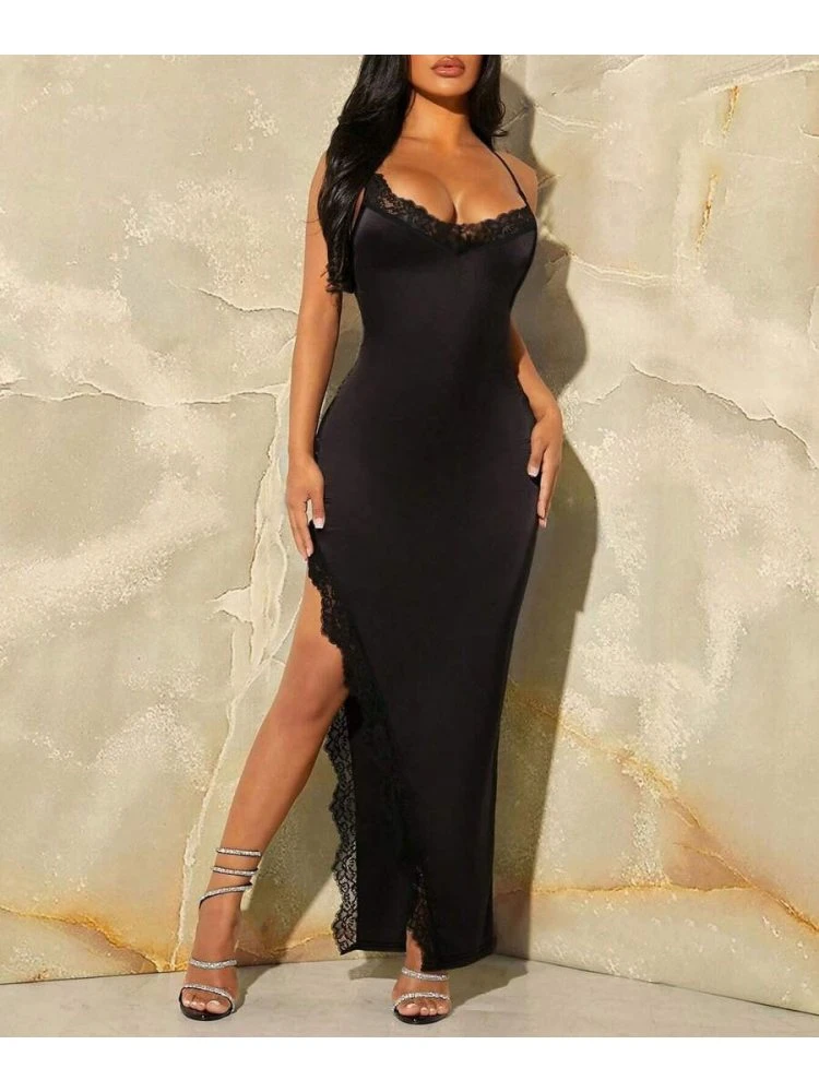 Patchwork,Split Hem,Lace Panel