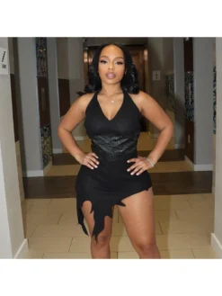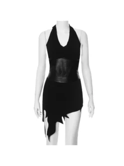 Halter,Irregular,Patchwork,Pure Color,Solid Color,Plain Color,Pullover