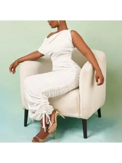 Drawstring,Patchwork,Pure Color,Ruched,Solid Color,Pullover