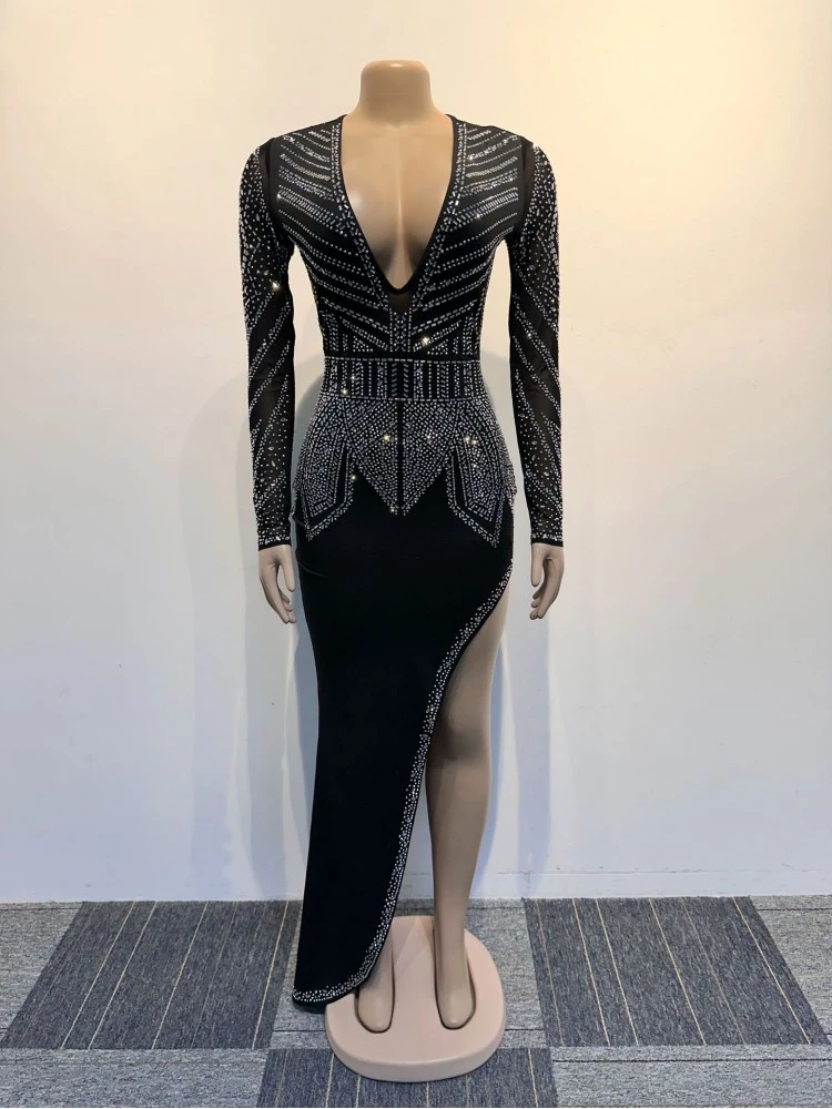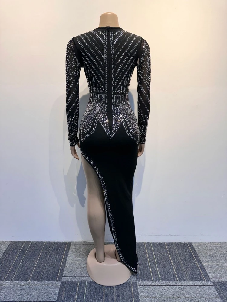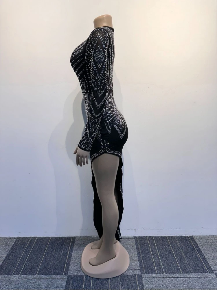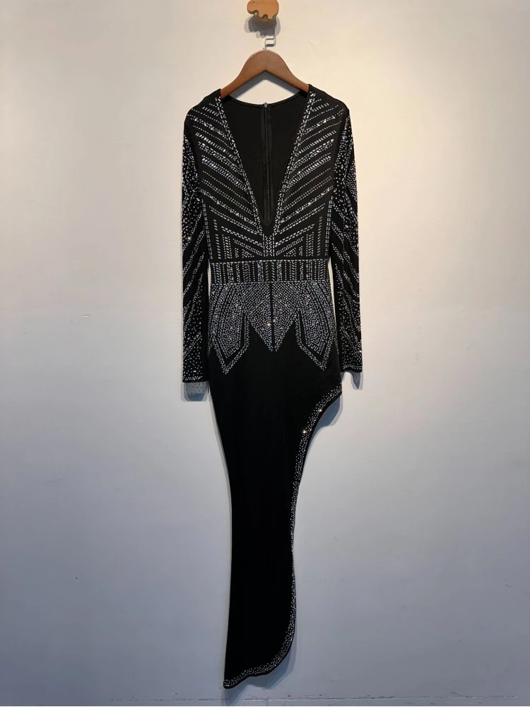 Hotfix Rhinestones,Pure Color,Split Hem,Solid Color,Plain Color,Pullover,See Through,Embellished