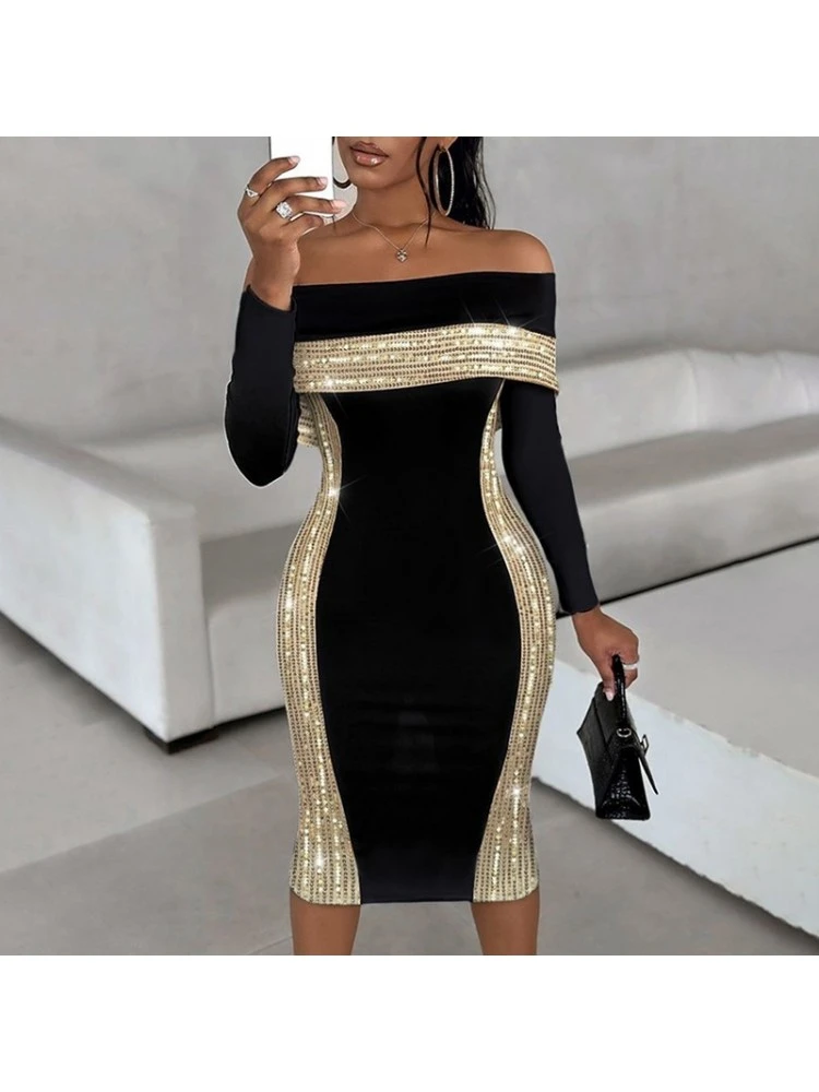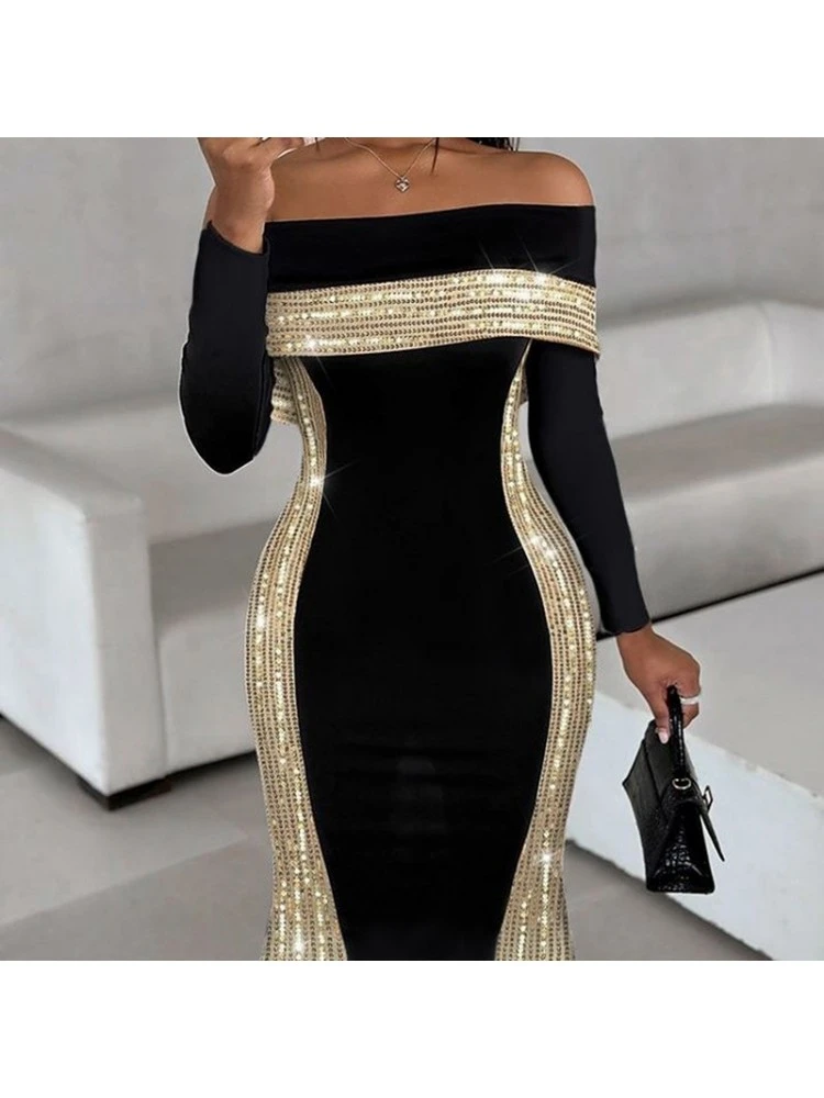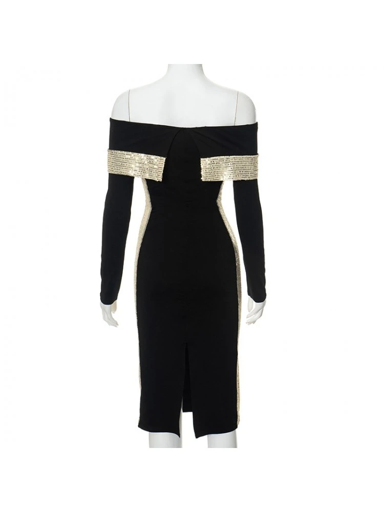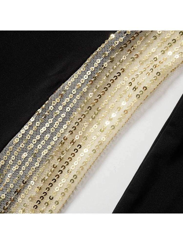 Patchwork,Pure Color,Sequin,Split Hem,Solid Color,Pullover