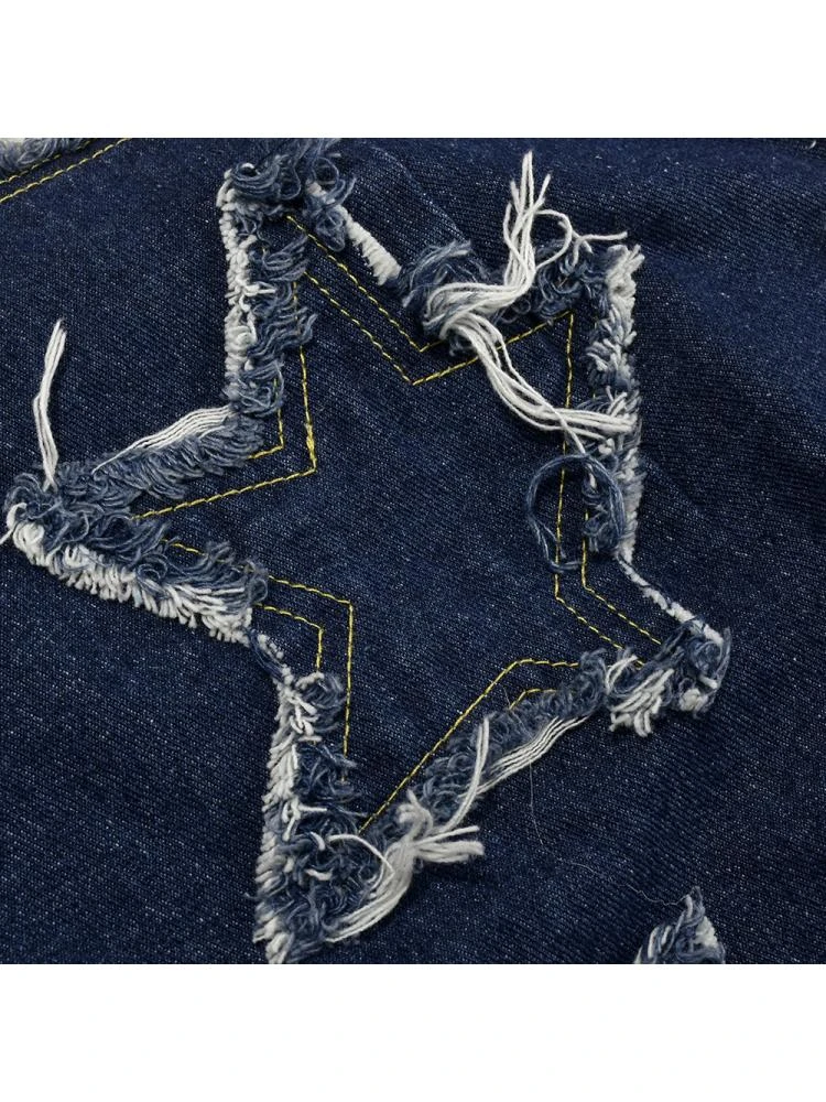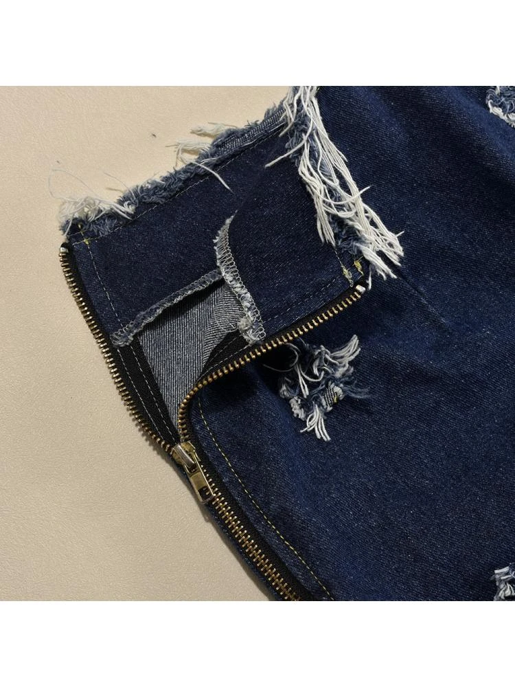 Embroidery,Patchwork,Pure Color,Raged Hem,Washed,Solid Color,Plain Color,Fringe