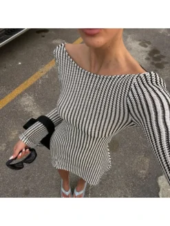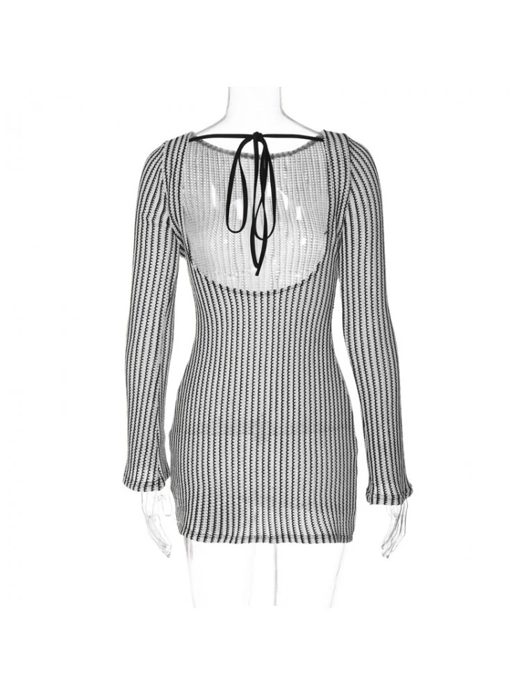 Hollow Out,Lace Up,Striped,Tie-wrap,Pullover,Print
