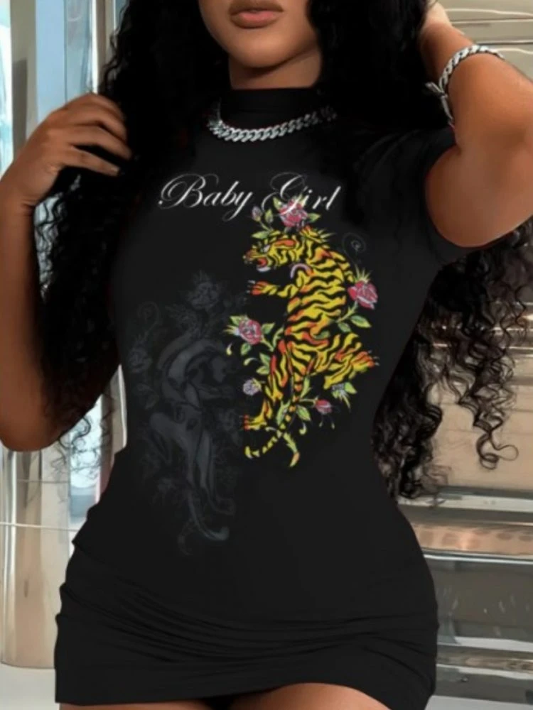 Animal Print,Letter,Printed,Pullover,Print,Letter Pattern