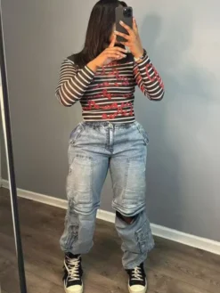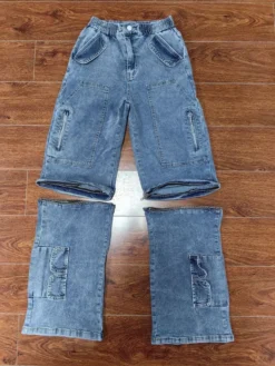 Please contact us and we are pleased to help you cut button holes in denim before delivery if you have such requirements because the button holes would not be open in the general case.The Items which cut button holes in denim can not be returned.